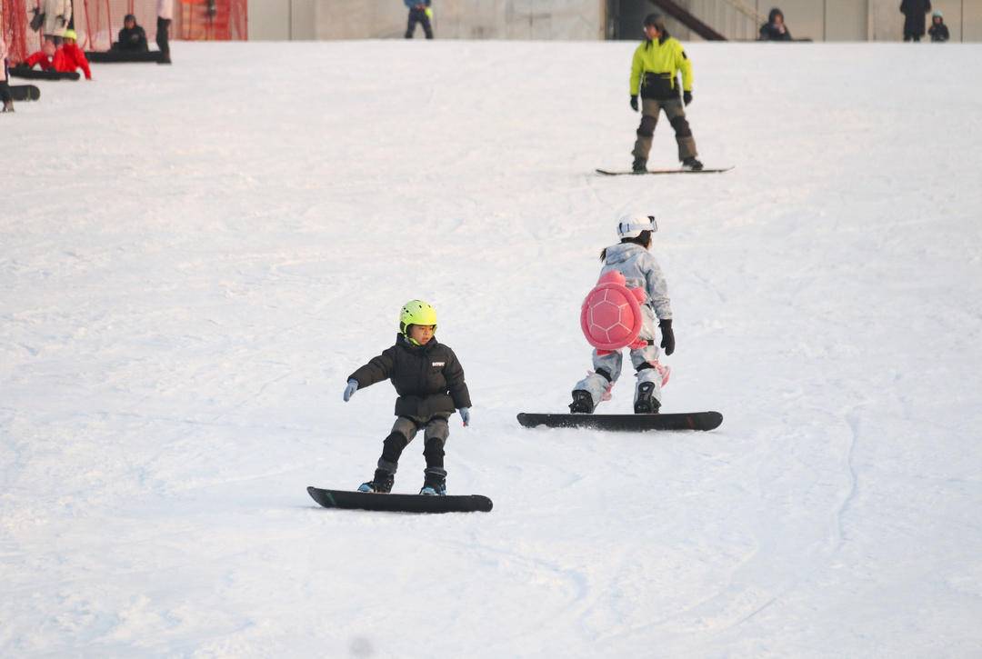 At Shenyang’s Dingxiang Lake Ski Resort, ski enthusiasts hit the slopes in full gear, while beginners try their hand at skiing under the guidance of instructors. The entire resort is buzzing with excitement!