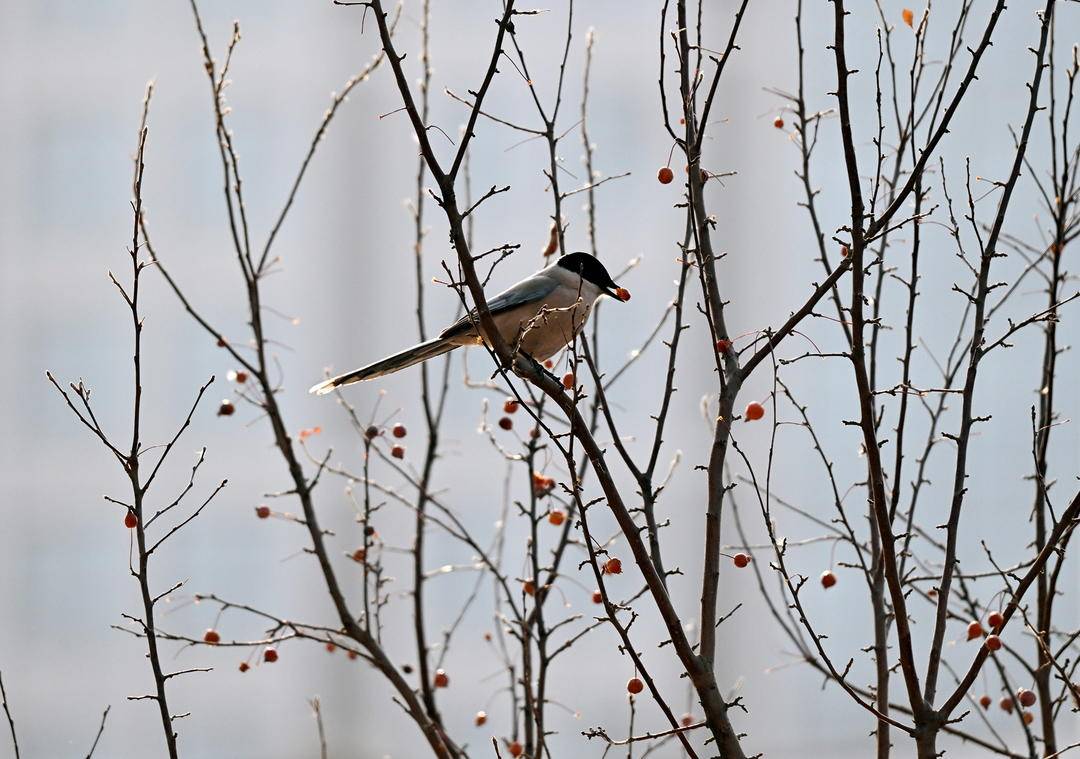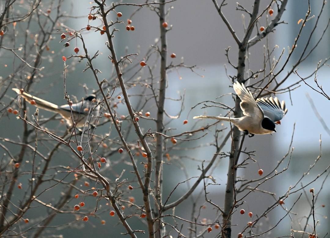 Hello, 2026! The banks of the North Canal in Shenyang, Liaoning Province are teeming with life. A flock of gray magpies flit among the Chinese crabapple trees laden with red fruits along the banks. They perch on the branches to preen their feathers, or frolic and peck at the fruits, injecting a vibrant touch into the canal in winter.