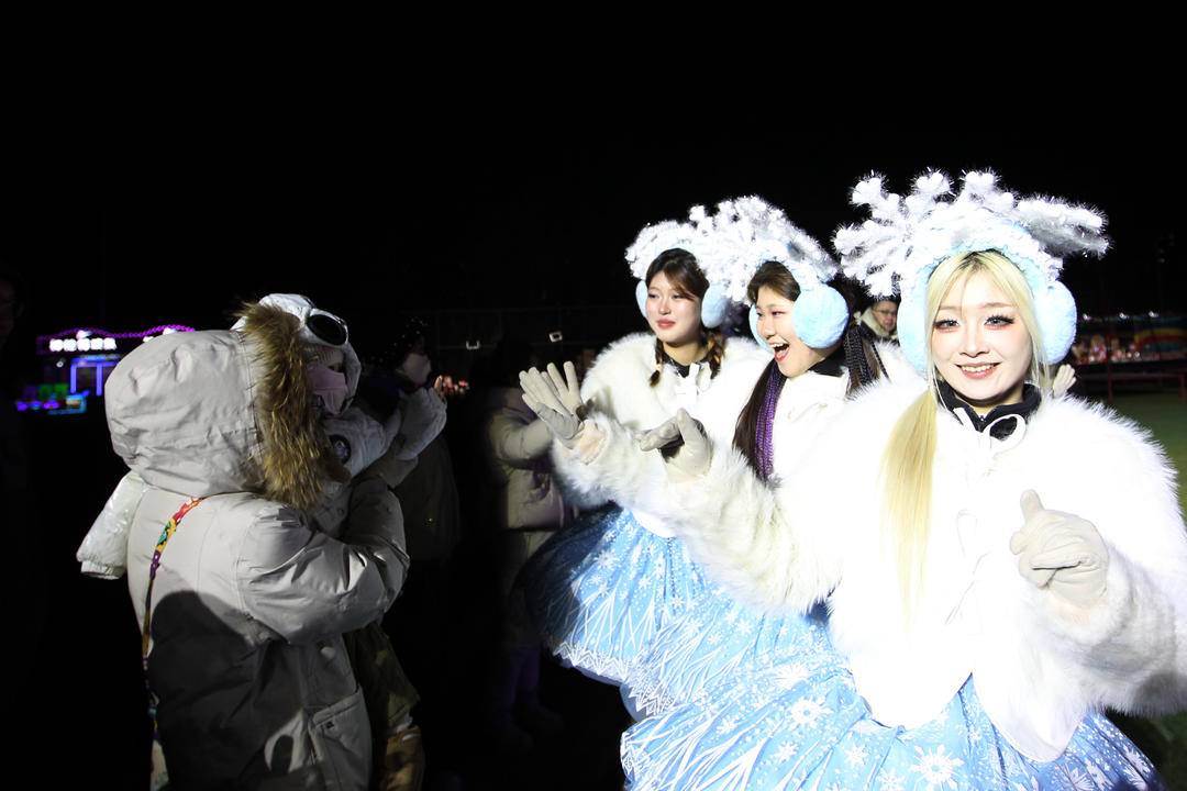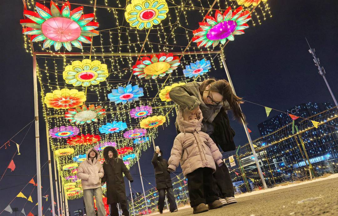As night falls, the lanterns at Shenyang’s Heping Cup World Football Park illuminate the evening. Festive vibes are in the air. People come here to celebrate the arrival of 2026.