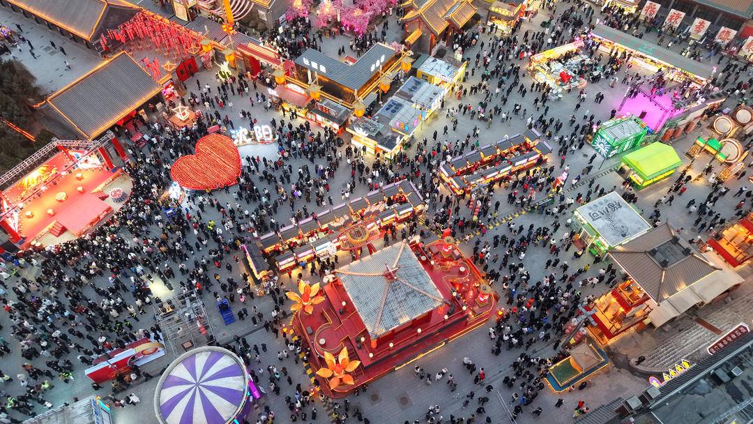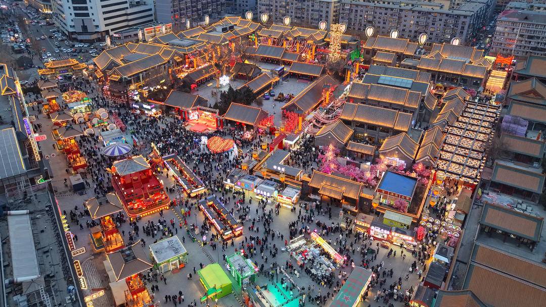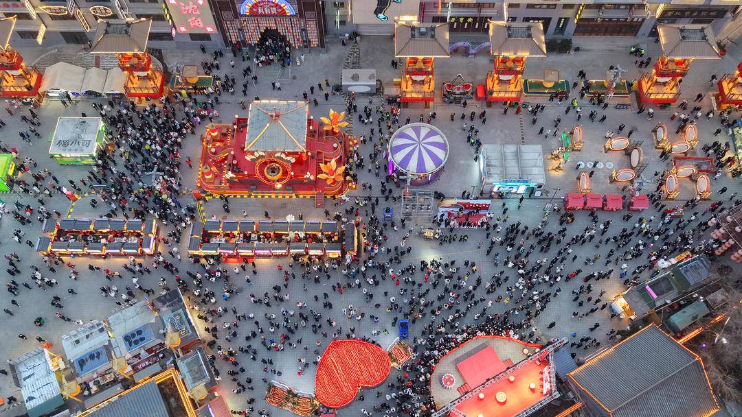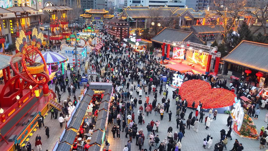 The Laobeishi Temple Fair in Shenyang is decked out in festive red, bustling with visitors and brimming with Chinese New Year flavor. Various folk shows and intangible cultural heritage performances take the stage in turn, delighting crowds with vibrant singing and dancing. Every corner exudes a joyful festive atmosphere.