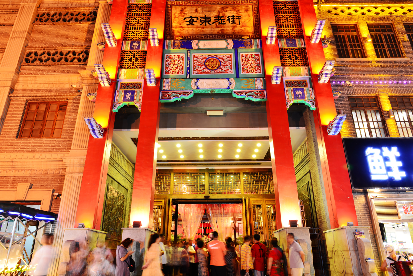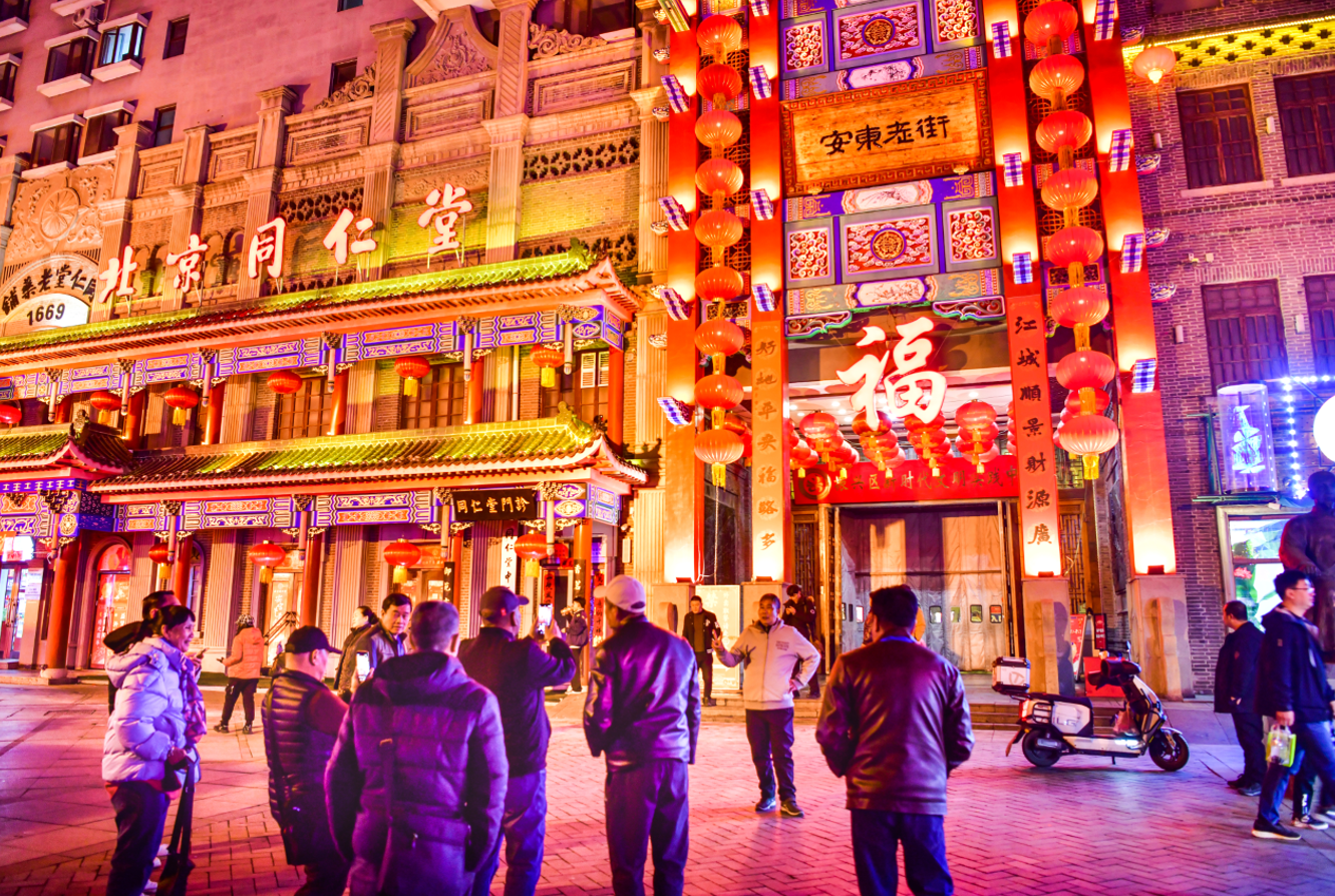 Andong Old Street in Dandong City, Liaoning Province, is a revamped street that integrates nostalgic tours, intangible cultural heritage, specialty catering, and modern commerce. The facades of the buildings here mainly demonstrate the buildings of the old street in the 1920s and 1930s in Dandong. Wandering through Andong Old Street, one feels as if transported back to the old times of this city.