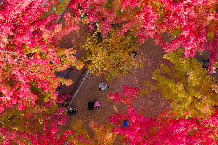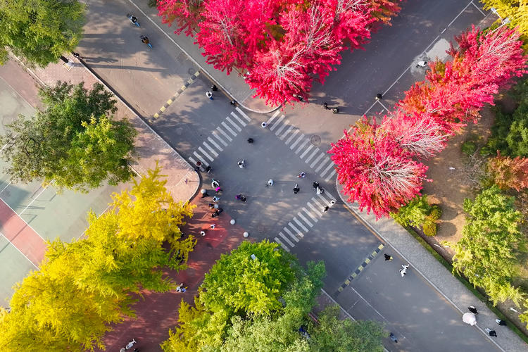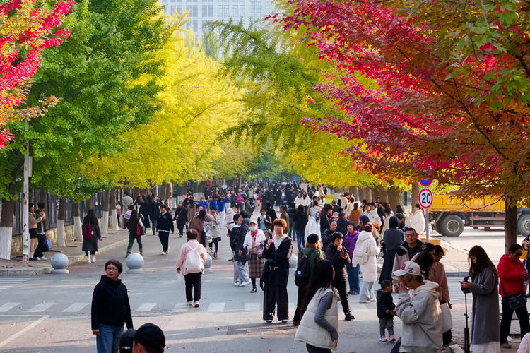 Liaoning University’s campus is steeped in autumn splendor. Red maple leaves, like blazing flames, are scattered among golden ginkgo foliage. Age-long teaching buildings are faintly discernible through the branches and leaves. All these paint a magnificent autumn picture.