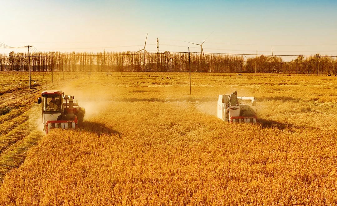 In the rice fields in Tieling City, Liaoning Province, two large rice harvesters are shuttling back and forth, operating at full capacity. Amid the roar of the machinery, rice ears are quickly harvested and threshed. All these compose a “symphony” of the harvest.
