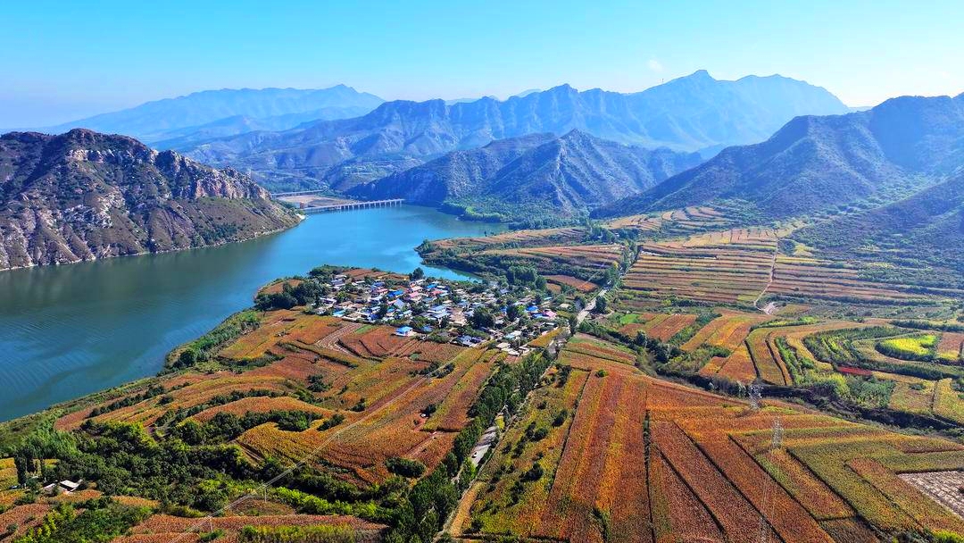 In the rural areas of Chaoyang County, Chaoyang City, Liaoning Province, lush mountains are layered in emerald hues, lucid waters wind their way, and golden corn, fiery red sorghum, and green vegetables interweave into a colorful “palette”, outlining a picturesque rural scene.