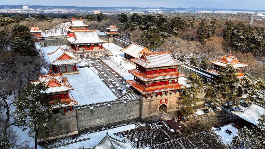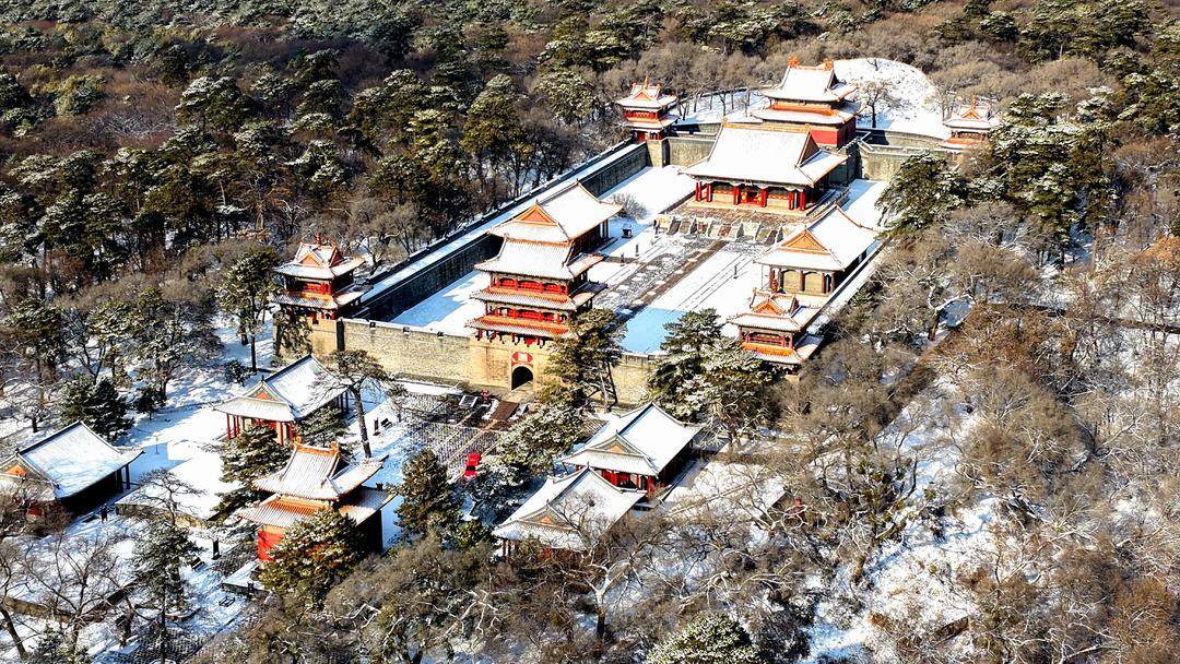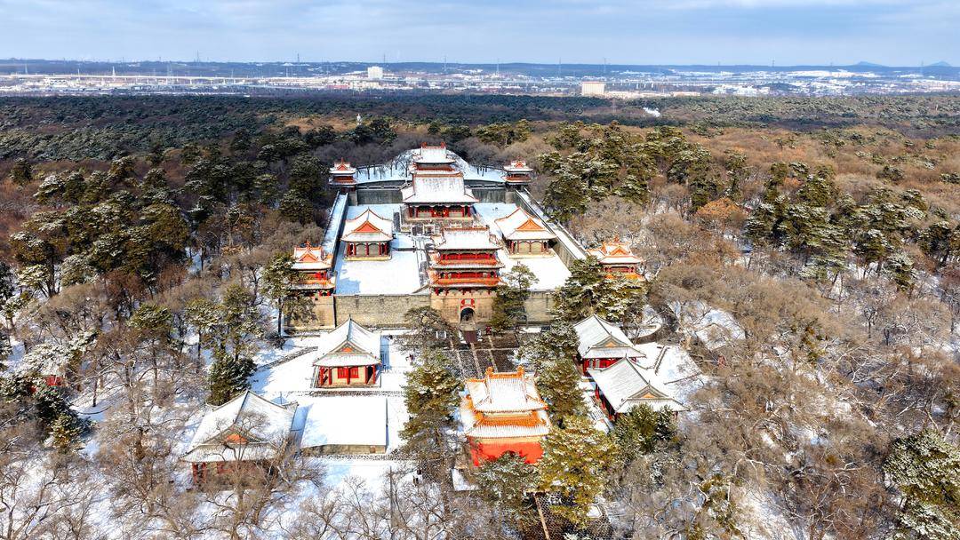 After snowfall, Dongling Park in Shenyang exudes both primitive simplicity and elegance. Centuries-old pines and cypresses are draped in snow, their verdant hues contrasting beautifully with the pure white snow, while the vermilion walls appear even more serene amid the snowy scenery.