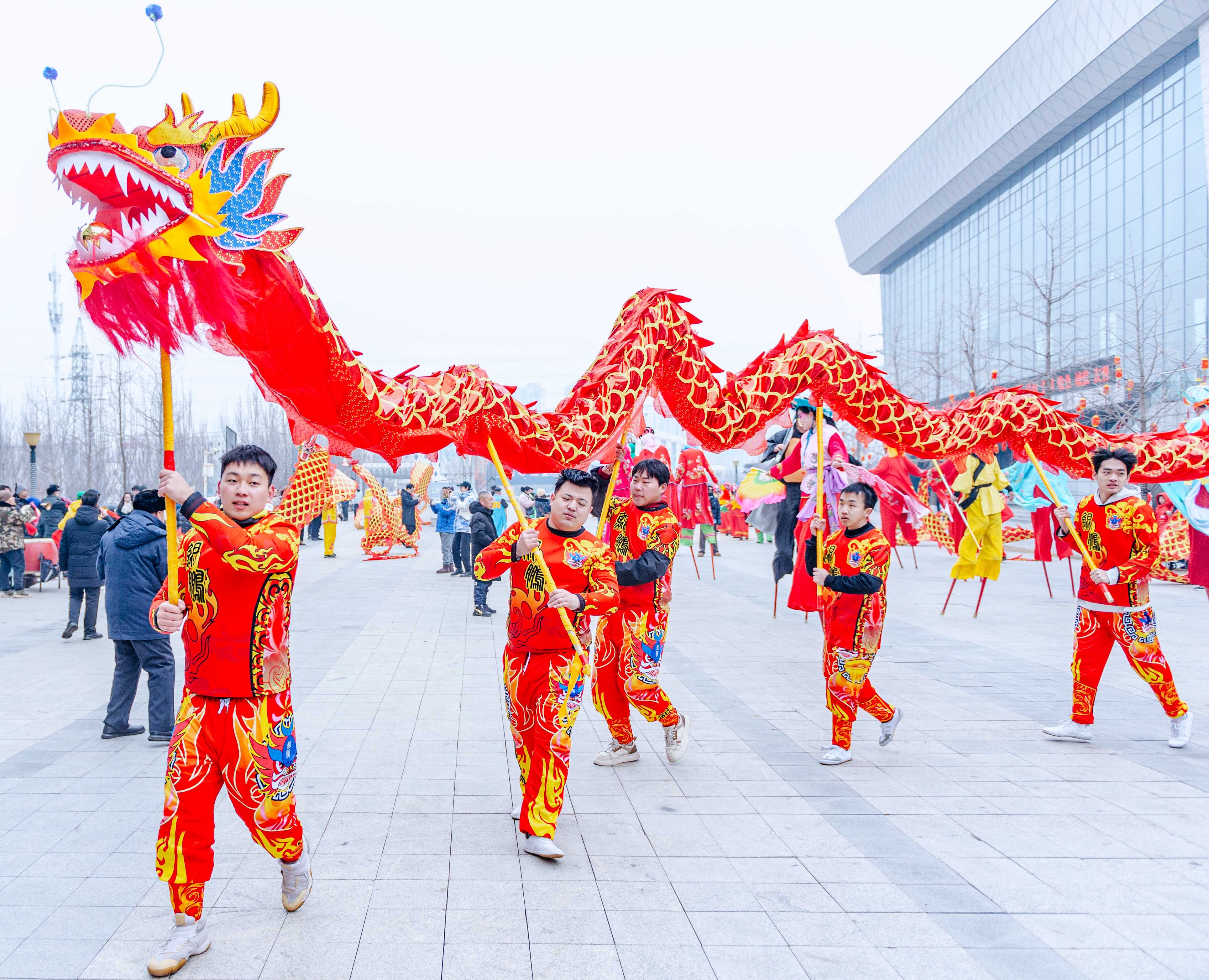 As Chinese New Year draws near, Jinzhou, Liaoning Province is filled with booming gongs and drums. Vibrant dragons twist and turn in the sky, and lions dance to the rhythmic beats. Local residents joyfully greet the upcoming Year of the Horse.