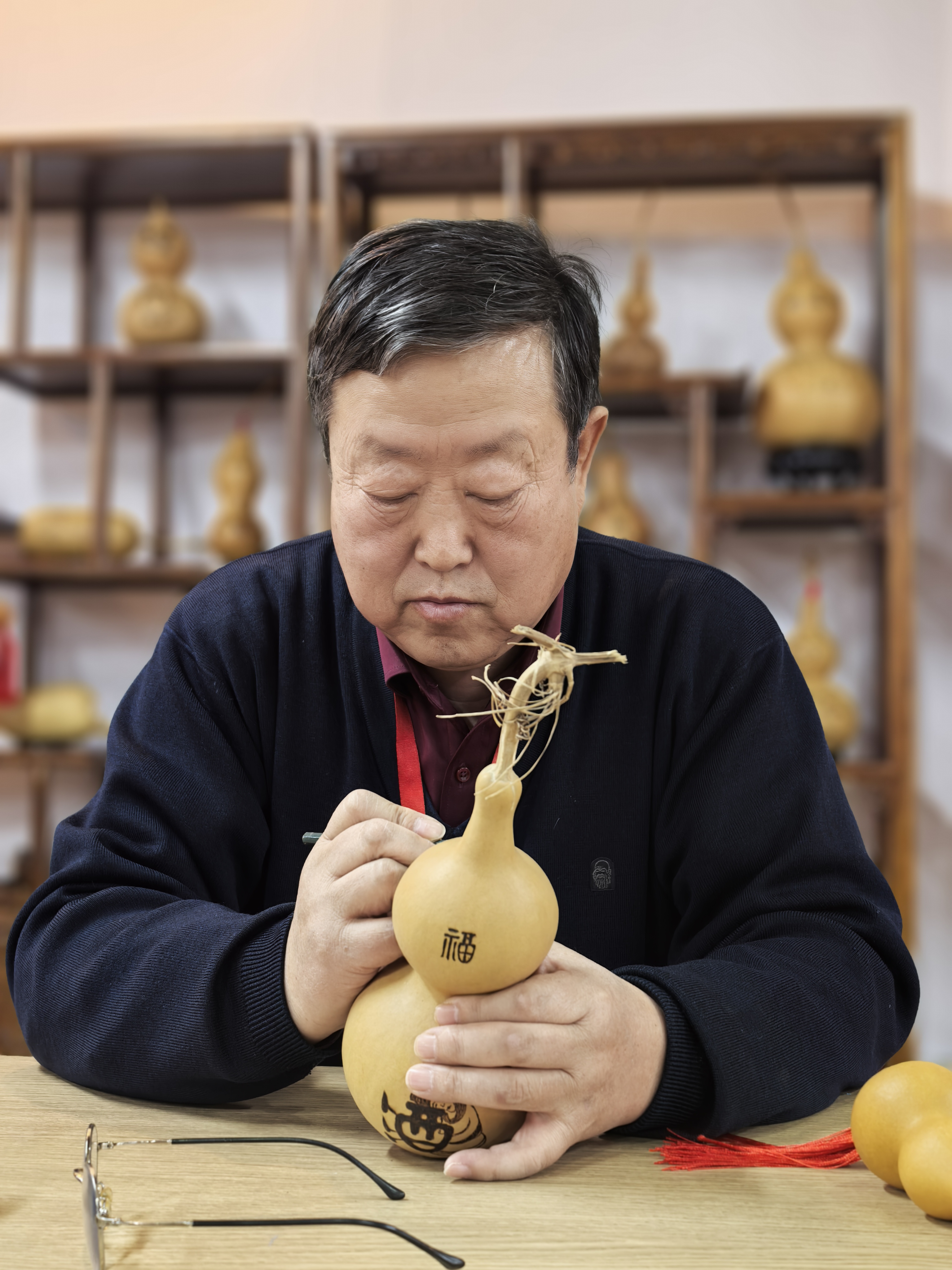 Tieling calabash pyrography and carving is a unique intangible cultural heritage (ICH) craft. Using an iron stylus as the creative tool, the craft integrates pyrography, carving and painting. The innovative application of colored pyrography imbues the patterns with both three-dimensional texture and vivid charm.