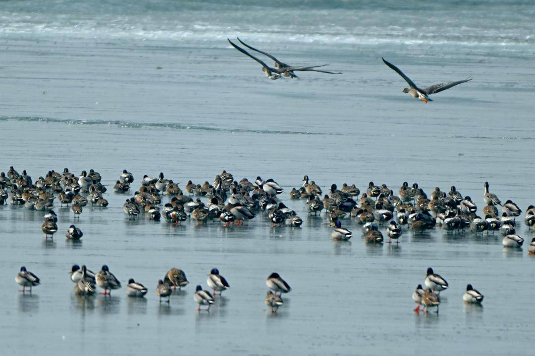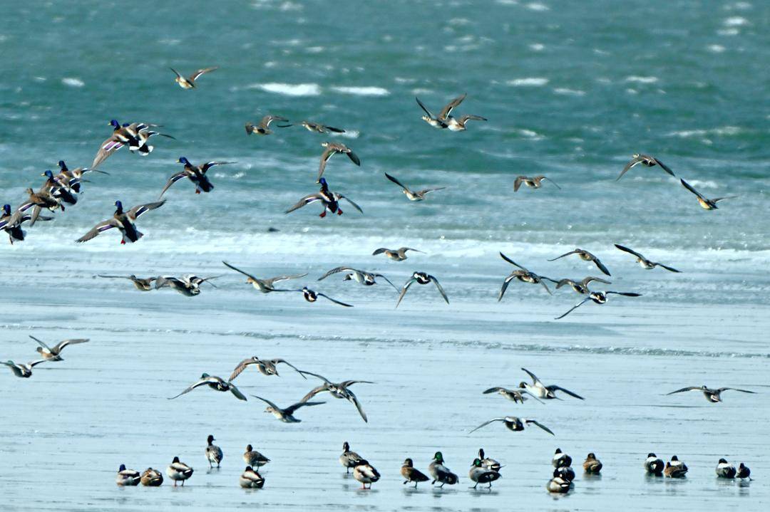 Tens of thousands of migratory birds, including mallards, northern pintails, have been seen resting, foraging and frolicking at Delta Reservoir in Panjin, Liaoning Province. They frequently take off in massive flocks, creating spectacular “bird waves”.
