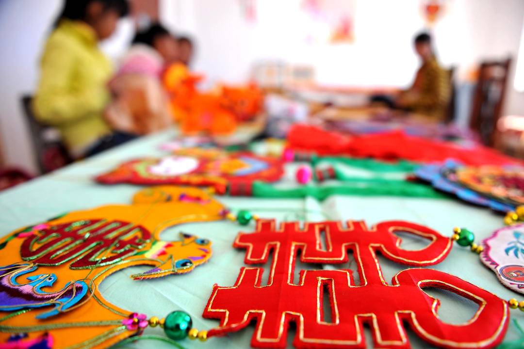 Chaoyang Folk Embroidery is a provincial-level intangible cultural heritage of Liaoning. Using hand-woven fabric as the base, artisans employ more than 20 stitching techniques. The embroidery adorns daily items and festival pieces such as tiger-head hats, dudou (bellybands), and birthday scrolls.