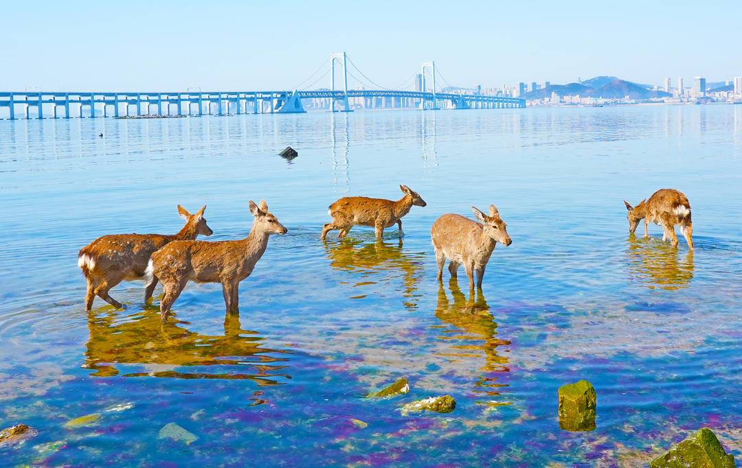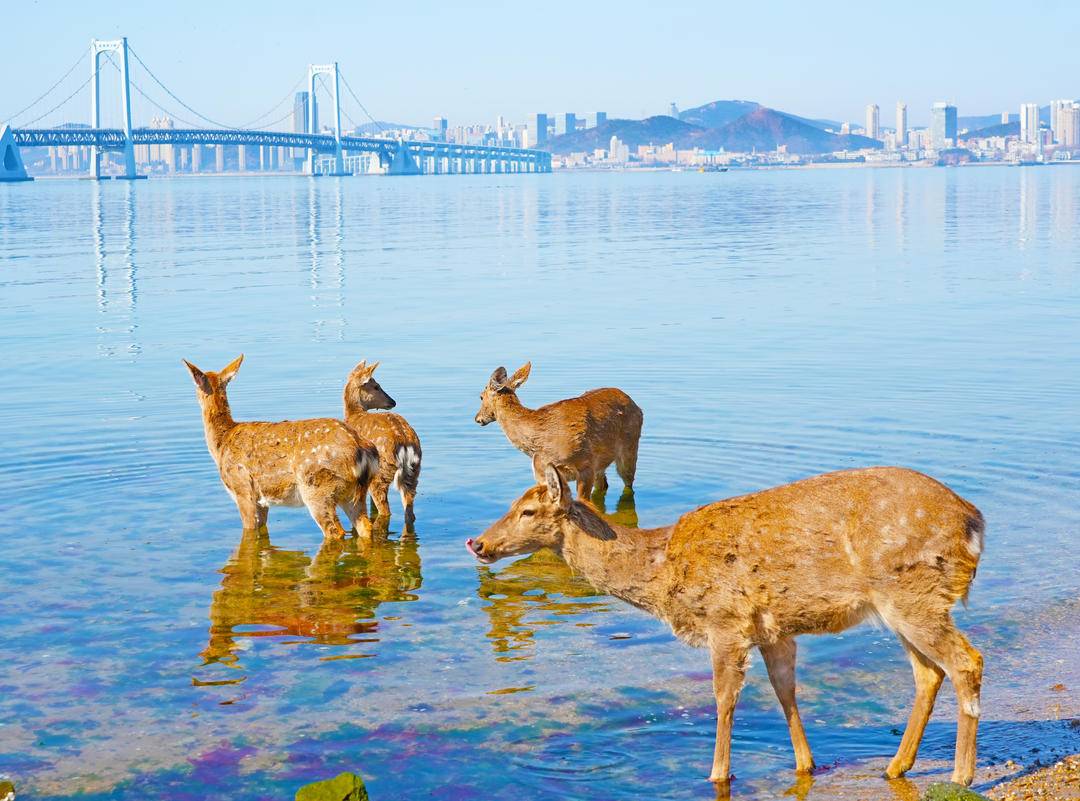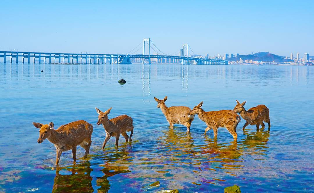 A herd of adorable spotted deer has been spotted at Golden Beach in Dalian, Liaoning, enjoying the seaside scenery. What a lovely spring surprise!