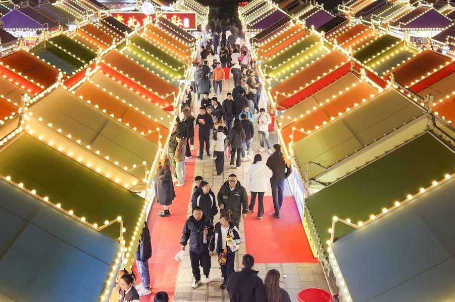 A lively yangko performance is captivating crowds at Hulu Ancient Town in Huludao, Liaoning Province. Dancers in bright, traditional costumes twist and turn with dynamic energy, accompanied by the lively rhythms of drums and suona.