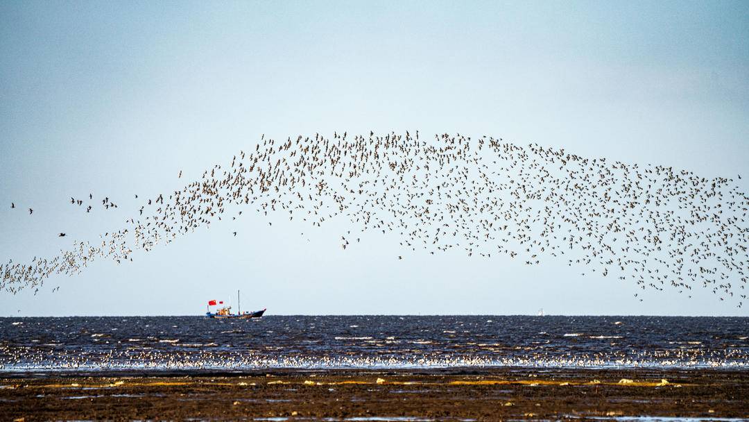 April is a peak season for bird migration in Yingkou, Liaoning Province! Millions of birds are turning the Yingkou coastline into a living canvas. As the tide moves, so do they—rising and falling together like sea waves.