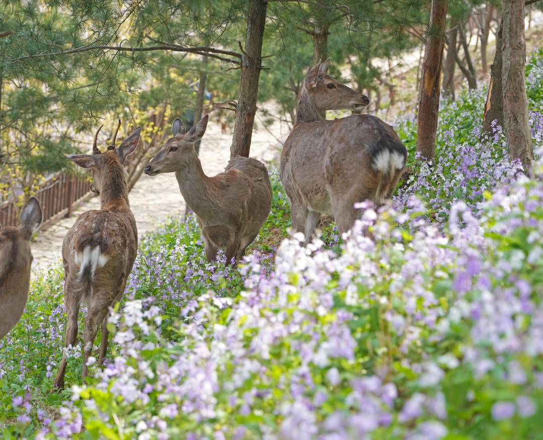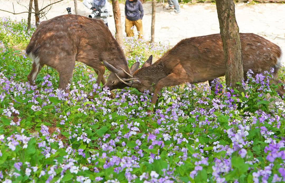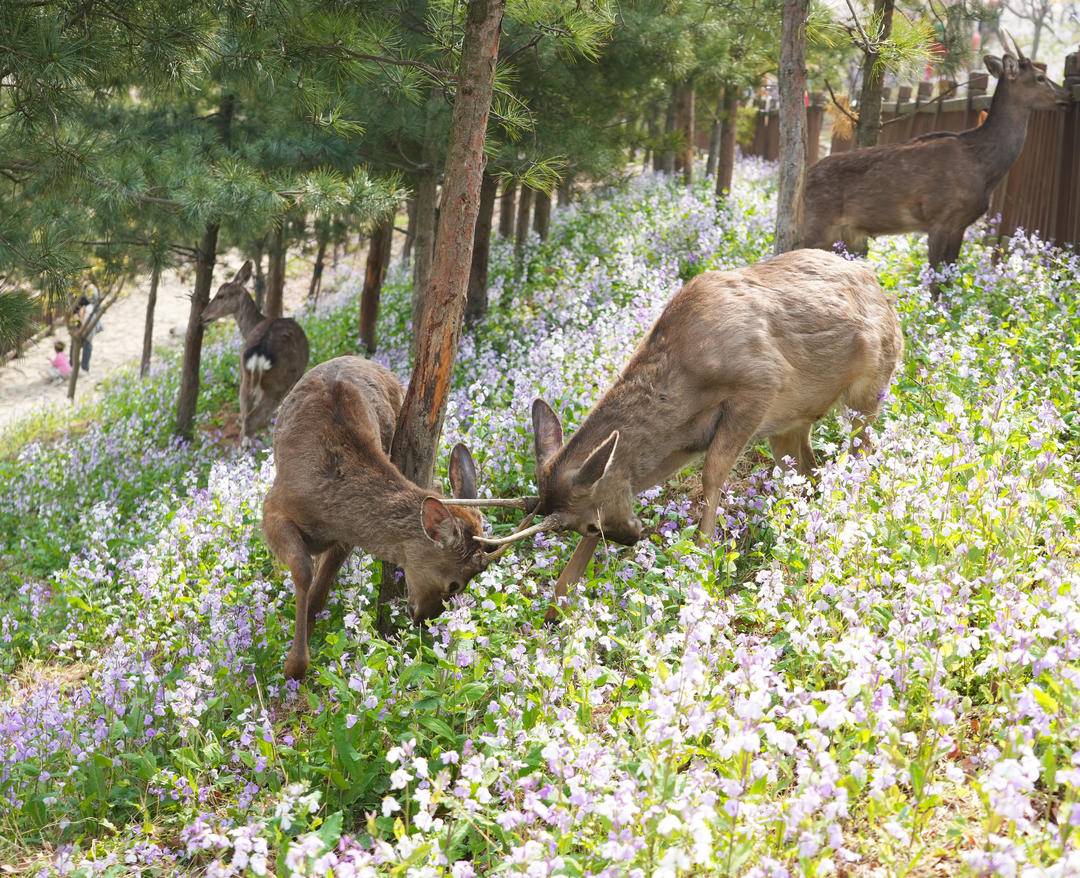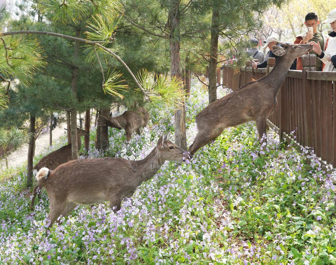 At Lianhua Mountain in Dalian, Liaoning Province, cute spotted deer wander and play freely among blooming spring flowers. Isn’t this dreamy fairyland view absolutely heartwarming?