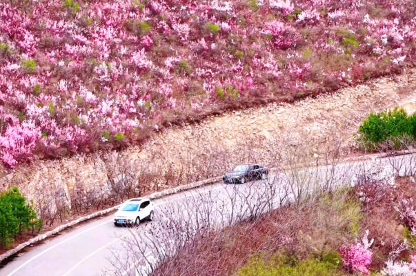 In the mountains of Zhuanghe, Dalian, Liaoning Province, waterfalls cascade down like white silk against a backdrop of blooming azaleas. With vibrant pinks tucked into lush greenery and the soothing sound of rushing water, it feels like stepping into a profound ancient realm.